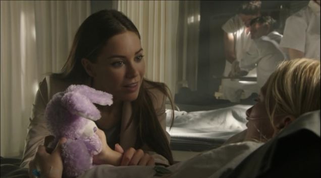 | Claire offrant une peluche à Bixby |